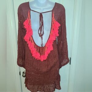 Sundress Women's beaded Knit dress in Rust swim coverup xs/s
