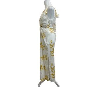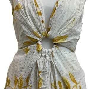 Excellent preowned condition Sundress Yuma Gold Leaf Foil Dress in white & yellow/gold, size large.
