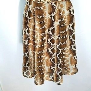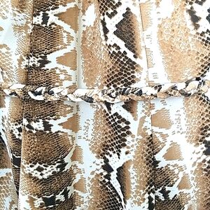 Sundress belted Python snake print lined chiffon high low Brown Tan Cream XS