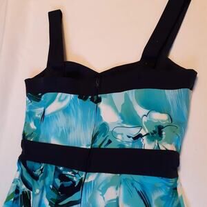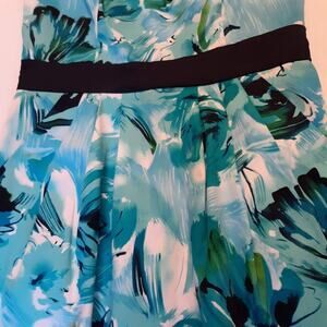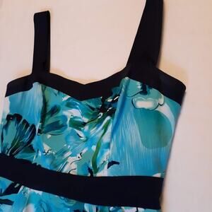 Sundress in Watercolors Size 6 Blue, White and trimmed in Black