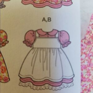 Includes pattern for pinafore, pantaloons, and hat in 3 sizes 17"-19" or 7-24lb.
