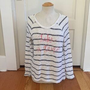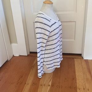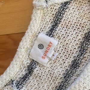 Sundry Cotton blend lightweight open knit “take a trip” pullover striped sweater size one equivalent to small.