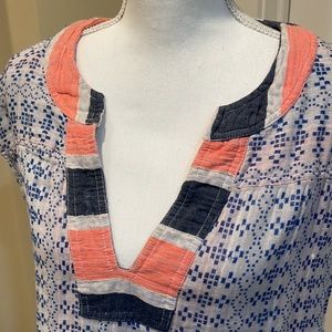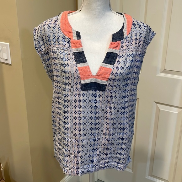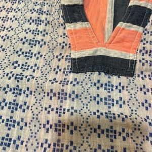 Worn a few times. In very good condition. Super soft cotton that has a gauze like feeling to it. Some blue strands loose but more the fabric type than flaws.