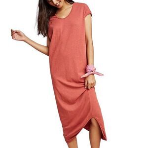 Sundry “Almost French” Asymmetrical Pink Mauve Short Sleeve Midi Dress Size 2 T-shirt dress with Scoop neck.