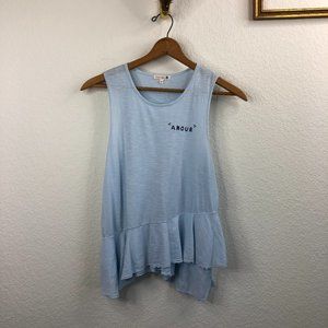 Sundry Amour Peplum Surf Baby Blue Printed Cotton Tank