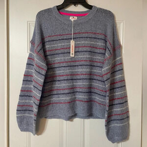 Sundry Anthropologie Cashmere and Wool Balloon Sleeve Striped Sweater Size L