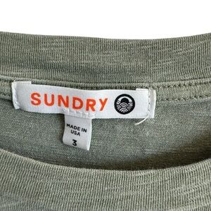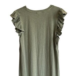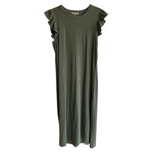 Super cute olive green midi dress from Sundry with ruffle sleeves and a side slits. This is a Sundry size 3, which translates to a standard US Large (see attached size chart). In great preowned condition; no visible flaws.
