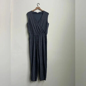 Crossbody jumpsuit cut in a slub spandex fabrication. Featuring a drawstring waistband, pockets and tapered leg.