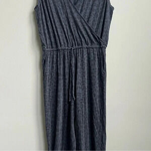 Sundry Blue Gray Animal Print Cotton Blend Elastic Waist Leg Hem Jumpsuit Sz 3