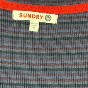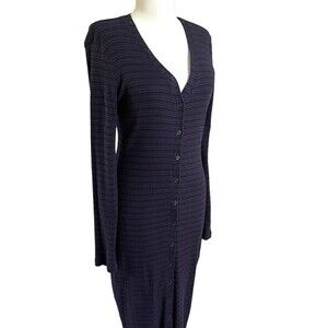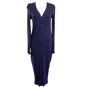 Sundry Button Front stretch Dress Striped Long Sleeve purple blue 2 M