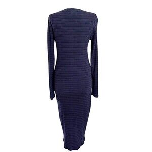 Sundry Button Front Body Fitting Maxi Dress Striped Long Sleeve purple blue 2 M