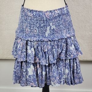 Sundry Chambray Wild Floral Ruffled Flounce Romantic Mini Skirt Sz M (2) NEW