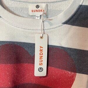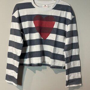Sundry Cream & Navy Striped Cropped Shirt w/ Heart Motif - NWT
