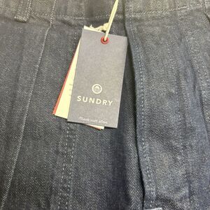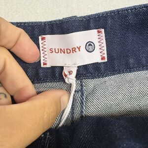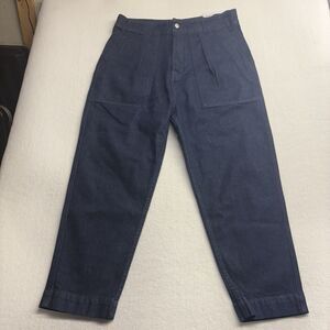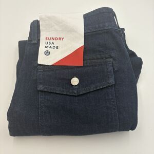 Sundry Dark Blue Wash High Rise Pleated Military Relaxed Fit Denim Pants 30
