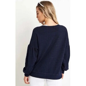 Weathered Terry feel, crew neck, balloon sleeves and embroidered design.