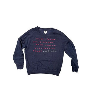 Weathered Terry feel, crew neck, balloon sleeves and embroidered design.