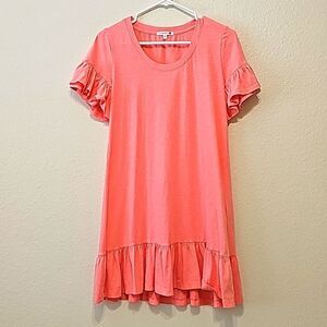 Sundry Dress Peach Orange T Shirt A Line Ruffle Short Sleeve size 0