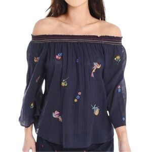 Sundry Embroidered Floral Off The Shoulder Dark Blue Top In Size 0