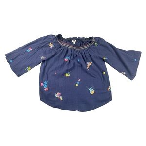 This Sundry embroidered floral off the shoulder dark blue top in size 0 is a stylish and versatile piece for women. Made of lightweight cotton material, the top features a flattering regular fit with 3/4 flared sleeves and a pullover closure. The floral embroidered accents add a touch of femininity, making it perfect for casual occasions. Machine washable and in a classic blue color, this blouse is a great addition to any wardrobe.