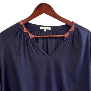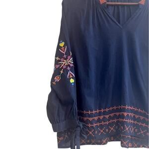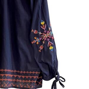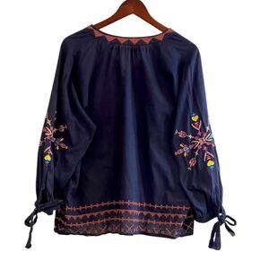 Sundry Embroidered Tied Cuffs Navy Blue Embroidered Blouse Sz 3 (8-10 US Medium)