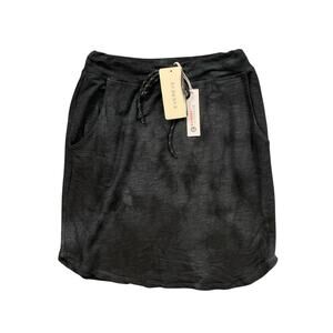 SUNDRY EVEREVE SKIRT WOMENS 0 BLACK TIE DYE SATURDAY PULL ON DRAWCORD CURVED HEM