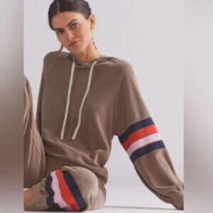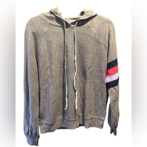 Sundry Faux Sherpa Striped Sleeve Hooded Cozy Soft Sweatshirt NWT O/XS Lounge