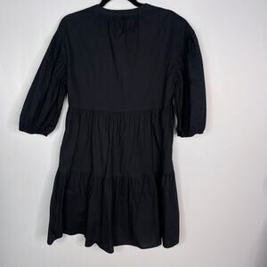 Sundry For Evereve 0 XS Black The Anywhere Dress Cotton Poplin Puff Sleeve VNeck