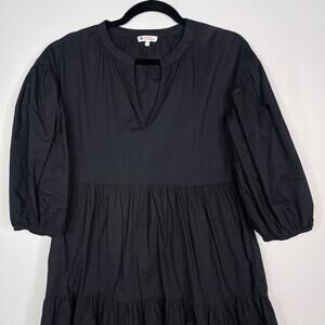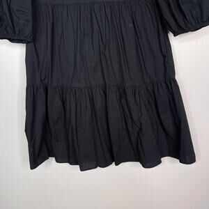 Sundry For Evereve 0 XS Black The Anywhere Dress Cotton Poplin Puff Sleeves VNeck