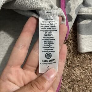 Made in USA with imported materials. Brand tags: Sundry on interior neck and fabric label.
