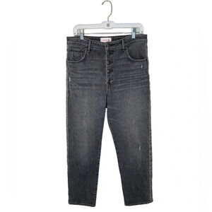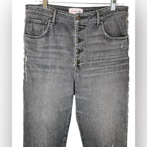 Sundry Leopard Trim Straight Ankle Jeans Size 30 Gray High Rise Button Fly.