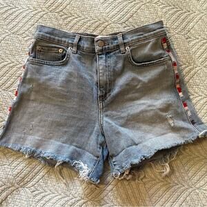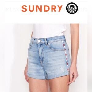 Sundry Love Relaxed Denim Short Shorts W/ Colorful Embroidery Light Wash Size 26