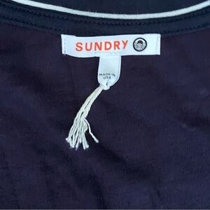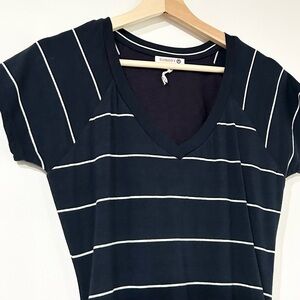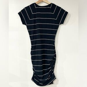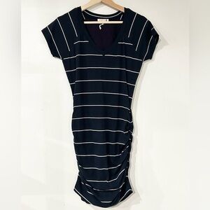 Sundry NEW Cotton Stripe Ruched Side V Neck Tee Dress Anthro Navy White XS