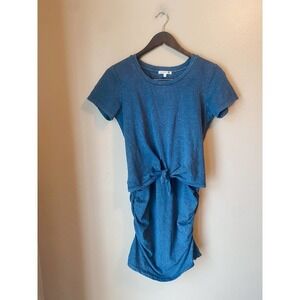 Sundry Navy Blue Tie Front Ruched T-Shirt Mini Dress