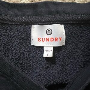 Sundry Navy Sweatshirt with Rainbow Cuffs