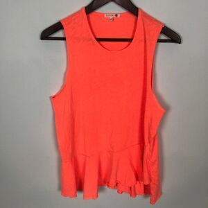 Sundry Orange Ruffle Peplum Sleeveless Raw Tank