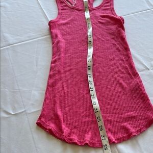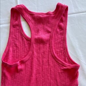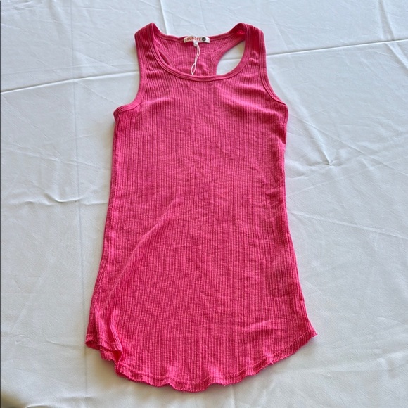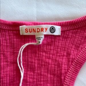 Vibrant pink ribbed tank top. Popular LA brand Sundry. Never worn and string from tag on but other part of tag was pulled off. Very stretchy so could fit a medium. Also, ski g my longer fit.