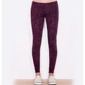 Dark red python print leggings in new condition. Size 0 equivalent to a size XS and size 1 equivalent to a size S.