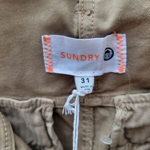 Sundry Relaxed Fit High Waisted Straight Leg Trousers Tan Orange Strip Size 31"