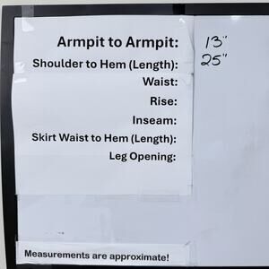 Written measurements are provided in the photo. All measurements are taken with the garment laid flat.