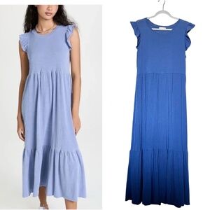 Sundry Royal Blue Ruffle Sleeve Tiered Maxi Dress Slub Cotton Jersey size 4 / XL