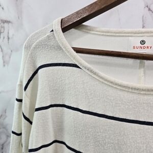Sundry Shirt Womens Small 1 White Striped Long Sleeve Tee T Top Drop Shoulder