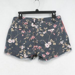 Sundry Shorts Women Mid Rise Banded Waist Frayed Floral Printed Cotton Navy 26