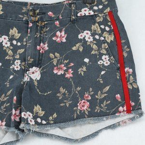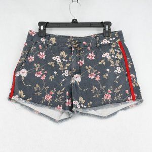 NEW Sundry Shorts Women Mid Rise Banded Waist Frayed Floral Printed Cotton Navy 26