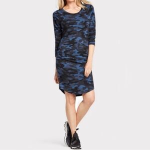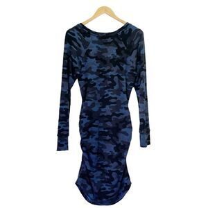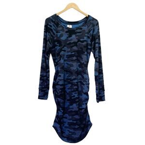 Sundry Side Ruched Sweatshirt Dress in Blue & Black Camo Sundry 2 | Size Medium
