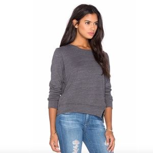 50% poly, 38% cotton, 12% rayon. Front exposed zipper closure.