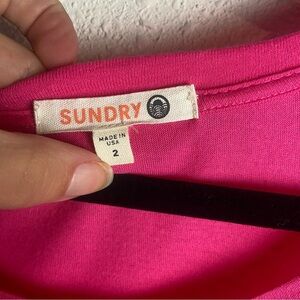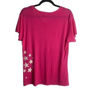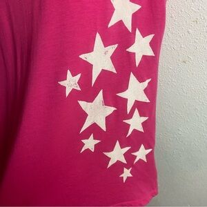 Sundry Size 2 Tee Shirt Hot Pink Star Print Modal Short Sleeve Tee Scoop Neck M