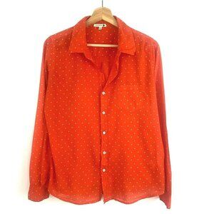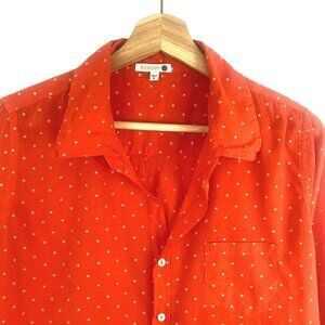 Sundry Button Front Collared Shirt Orange White Stars. Lightweight cotton