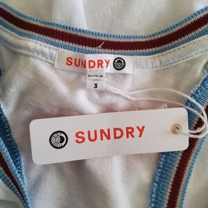 Sundry Stripe Trim Racerback Tank Top Large White NWT