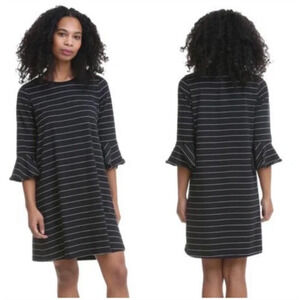 Sundry Striped Dress Womens 0 XS Black Flared 3/4 Sleeve Casual