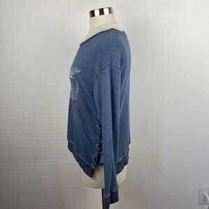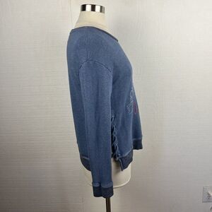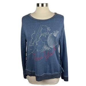 Sundry Sweatshirt M Womens New York Blue Graphic Lace Up Sides Cotton Blend